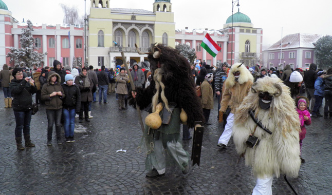 Idén volt szerencsém elkísérni a két horvátországi magyar tánccsoportot Magyarország legnagyobb farsangi mulatságára, az egyik legnépszerűbb turisztikai eseményére. Február 10-én, a hatnapos rendezvény farsangvasárnapján lépett föl a két együttes. Mohácsra érve az első állomás a Széchenyi Téri Általános Iskola volt, onnét már népviseletbe öltözve mentek át a Kossuth filmszínházba, ahol első fellépésük a délelőtt 10 órakor kezdődő nemzetiségi néptáncműsoron volt. A laskói Petőfi Sándor MKE tánccsoportja öt éve, a csúzai Csárdás pedig 2000 óta állandó fellépői a rendezvénynek. A laskóiak felcsíkit, a csúzai tánccsoport pedig kalotaszegi táncot mutattak be a közönségnek. Minden fellépő tánccsoport oklevelet és egy mohácsi fekete kerámia díszedényt kapott ajándékba részvételéért, melyet Köveskuti Péter, a busójárás főszervezője adott át. Az ezt követő pár óra szabad idő alatt körbejárhattuk a fesztivál helyszíneit. Mohács központja tamburazenétől, a busók kereplőitől és kolompjaitól volt hangos. A 900 busó csörömpölésétől és félelmetes maskarájától mégsem ijedtek meg a busójárás látogatói, mint a helyi sokác legenda szerint hajdanán a törökök. Körülbelül nyolcvanezer ember tolongott Mohács utcáin, a kézművesstandok, kürtőskalácsárusok, sütödék előtt is hatalmas sorok kígyóztak. A busóknak nem csak az embereket, de a telet sem sikerült teljes mértékben elkergetniük, szitált a hó. A délután kezdődő szabadtéri fellépésen a csúszós színpad nem könnyítette meg táncosaink dolgát, ennek ellenére a tőlük megszokott formájukat hozták.