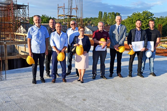 Az áprilisi alapkőletételhez képest látványos az előrehaladás az építkezés terén. Ezt az államtitkár is kiemelte, akit büszkeséggel töltött el a munkálatok ilyen mértékű előrehaladott állapota.