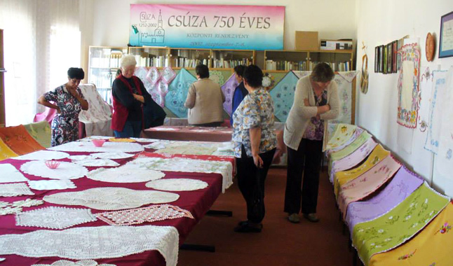 A csúzai Nőegylet kézimunkázói május 11-én, vasárnap kiállították a munkáikat a kultúrotthon könyvtártermében. A kiállítás anyagát csipkék, hímzett asztalterítők, párnák, gobelinek, sálak, papír díszek és gyöngyfűzések képezték.