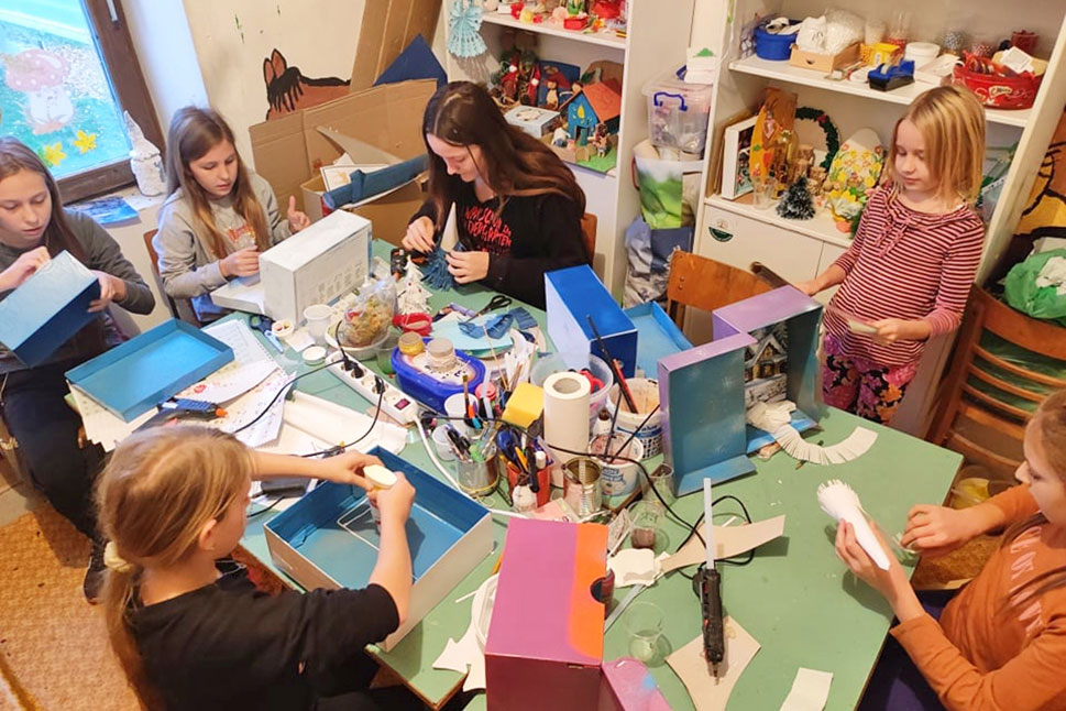 Az újbezdáni művelődési egyesület tagjai – felnőttek és gyerekek – is székházukban gyűltek össze, hogy közösen alkossanak.