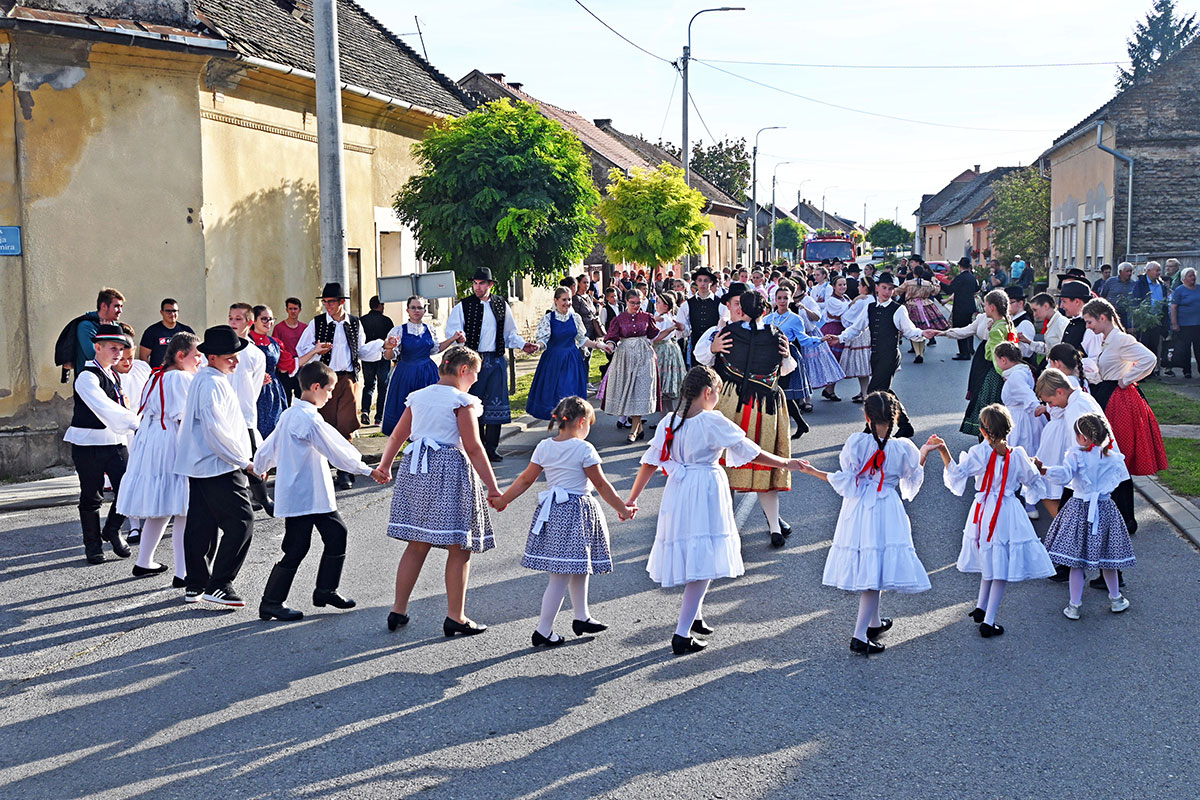 Povorka je završila velikim čardašem u krug u centru sela, gdje je manifestacija obogaćena štandovima na kojima je bilo ponuđeno vino, razne rukotvorine, kolači, med, rakija malih proizvođača. Nakon plesa, ozračje je još bolje podigao PTE Brass Band, limeni sastav iz Mađarske, koji su svirali poznate mađarske i inozemne pop i rock šlagere.