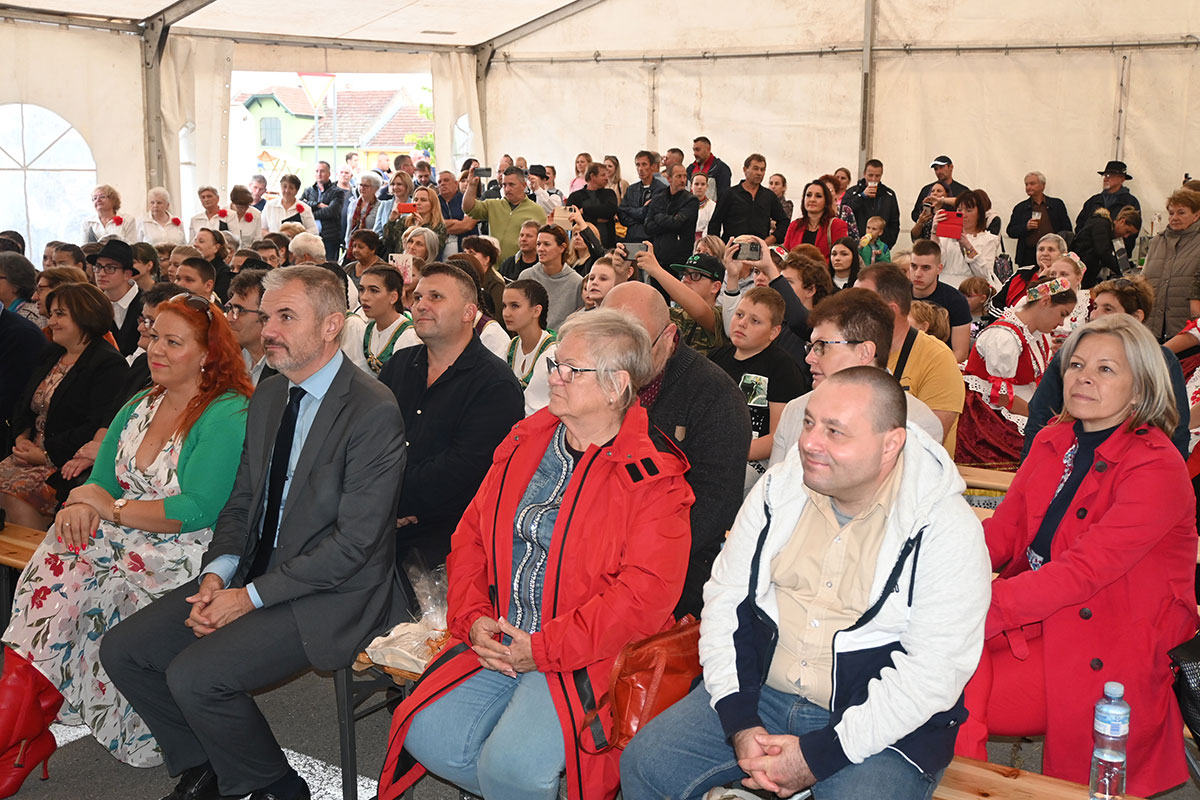 Kulturni program održao se u šatoru. Okupljene su redom pozdravili Kristina Šipoš, domaćin, Stipan Šašlin, načelnik Općine Draž i Róbert Jankovics, predsjednik DZMH.