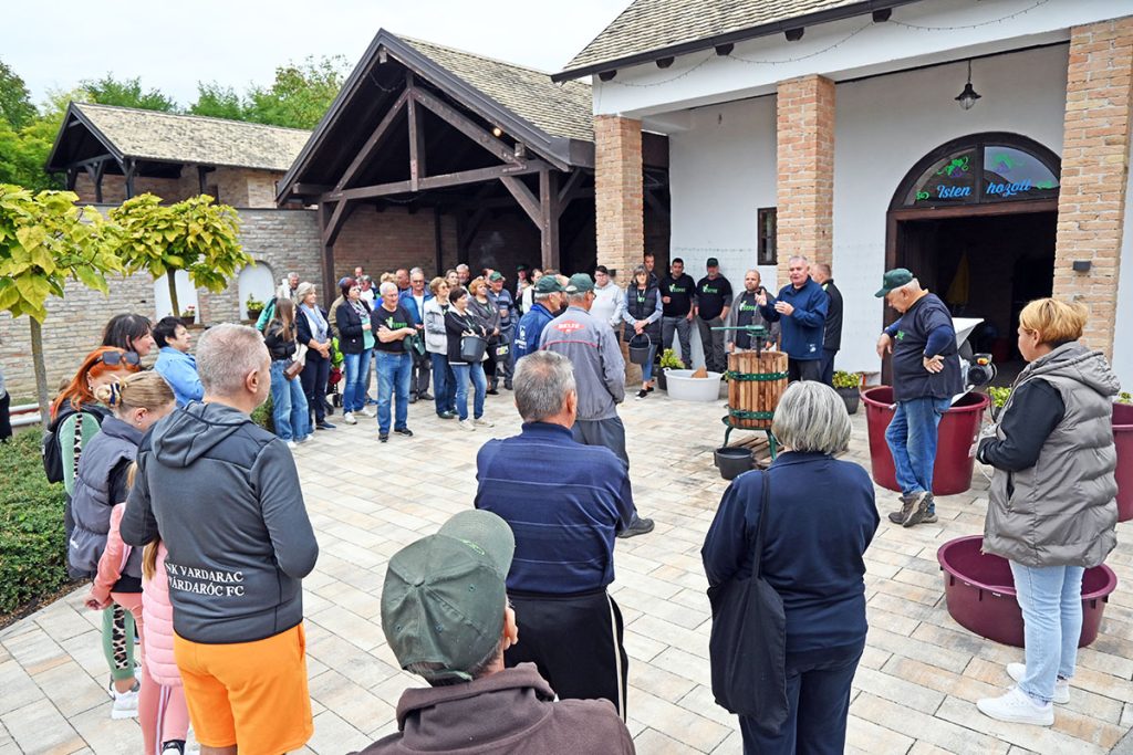Na događaj su ove godine stigli sudionici iz još više mjesta nego inače: osim domaćih članova, prisutni su bili i članovi riječkog ogranka, a došli su i iz Vinkovaca, Luga, Vardarca i Kopačeva. U poslu su sudjelovali i učenici mjesne mađarske osnovne škole, pa su tako i pripadnici najmlađih naraštaja mogli iz neposredne blizine doživjeti iskustvo berbe. Među beračima je bio i naš saborski zastupnik Róbert Jankovics, koji sa svojom obitelji svake godine rado sudjeluje u radu. Na svečanost berbe došao je i János Magdó, generalni konzul Mađarske u Osijeku.