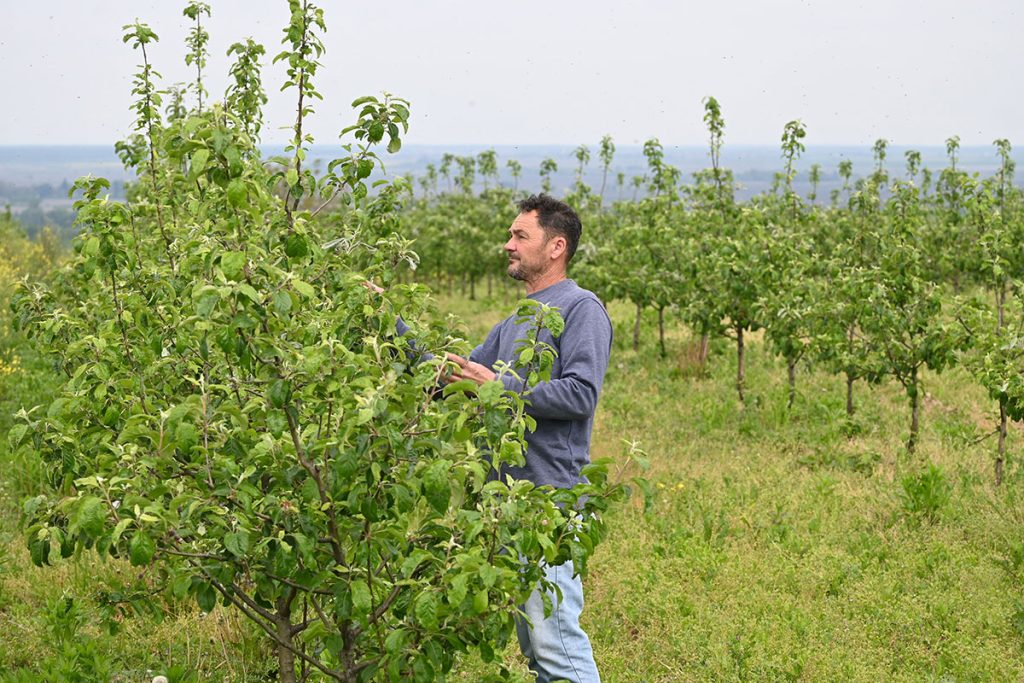 – Itt almafák vannak, a koraitól a késői fajtákig, mind rezisztens, tehát nem szükséges a permetezésük – mondja riportalanyom, hozzátéve, az alma képezi gyümölcsléüzemük fő alapanyagát.