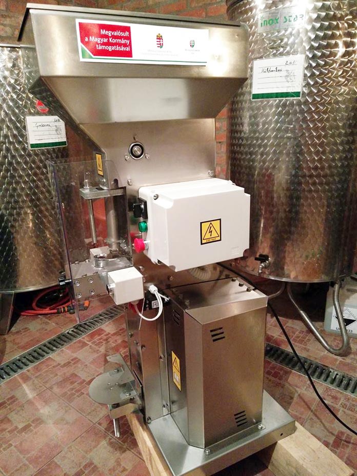 – Néhány évvel ezelőtt szőlőt telepítettünk, és borkóstoló helyiséget is létrehoztunk a közelmúltban, most pedig úgy gondoltuk, a borászatban használatos technológiába fektetnénk. Úgy véljük, Baranyában nagy lehetőség rejlik a vörösborkészítésben, így erre összpontosítanánk. Ehhez nagy szükségünk volt a tartályokra, a vörösborerjesztő tartály, az ún. vinifikátor pedig a kézi munkát helyettesíti a vörösborkészítés során, de segítségével javíthatunk a termék minőségén is – tudtuk meg Szabó Anasztáziától, aki hozzátette, a dugózógép is a palackozási folyamat gyorsaságán és minőségén hivatott javítani.