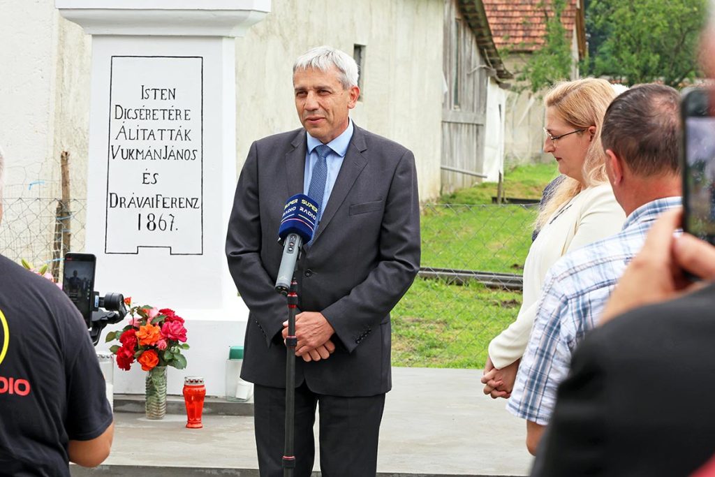 -Ovaj križ postavila su dvojica Mađara u naselju gdje se danas više ne govori mađarski. Ne znam žive li ovdje još uvijek Mađari, ali svakako dugujemo zahvalnost općini, ljudima iz sela koji su ga sačuvali toliko dugo, no temeljita obnova je bila nužna, a financiralo ju je mađarsko Ministarstvo vanjske trgovine i vanjskih poslova. Ovo je dio naših nastojanja da spasimo i očuvamo mađarske vrijednosti, gdje god one bile u svijetu, i nadamo se da će ostati sačuvane barem još 150 godina, što pokazuje da su ovdje nekada živjeli Mađari – objasnio je János Magdó.
