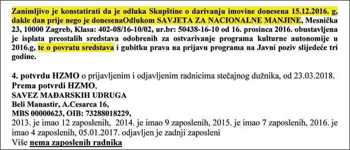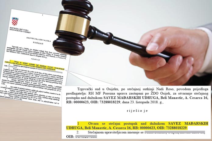A horvát államügyészség javaslatára az eszéki cégbíróság október 23-ai végzésével elindította a MESZ elleni csődeljárást. Ugyanis a szervezetnek (majdnem) két év alatt sem sikerült törlesztenie a horvát állami költségvetés felé az 1.097.693,88 kúnás adósságát, amely a 2015-ös évben kapott költségvetési források nem rendeltetésszerű felhasználásának következményeképpen keletkezett.