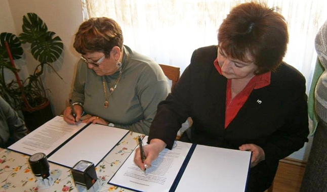 Vukovár, 2013. november 30. – A Vukovári Magyarok Egyesülete az ottani magyar házban fogadta a hét végén a kaposmérői Szabad Nap Környezetvédelmi, Kulturális és Polgárőr Egyesületet, valamint a patalomi FŐNIX Somogyi Nagyasszonyok Egyesületének tagjait. A két magyarországi civil szervezettel a jövőben szorosabb együttműködést kívánnak kialakítani, a partnerségről szóló megállapodást egyezmény formájában is megfogalmazták és aláírták. Jakumetović Rozália, a vukovári egyesület elnök asszonya lapunknak úgy nyilatkozott, nagyon fontos, hogy jó kapcsolatot ápoljanak anyaországi egyesületekkel. A csoport tagjai között voltak a szigetvári horvát kisebbséghez tartozók is, akik a vukováriakat meghívták a januári 25-i horvát bálba, ami további kapcsolatépítésre kínál lehetőséget.