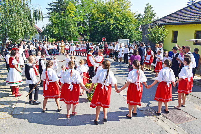 A néptáncosok felvonulása a kultúrotthonból indult és a rendezvény helyszínén, a tűzoltóság udvarában ért véget. A felvonulókat a bíró és a bíróné vezette, ezeket a szerepeket idén Radić Antonio és Horvát Rebeka töltötték be. A Csárdás néptáncosain és a Hajnalcsillag gyermektánccsoporton kívül a kiskőszegi HMDK-