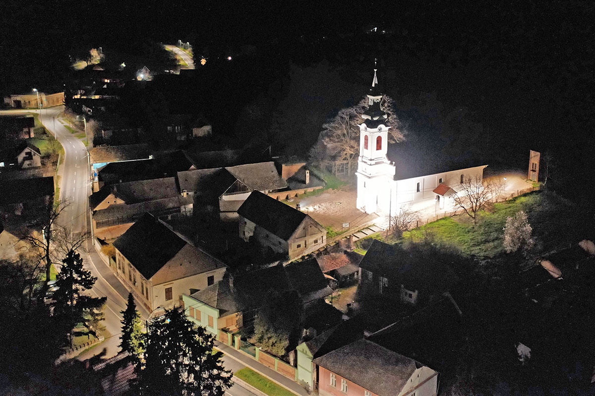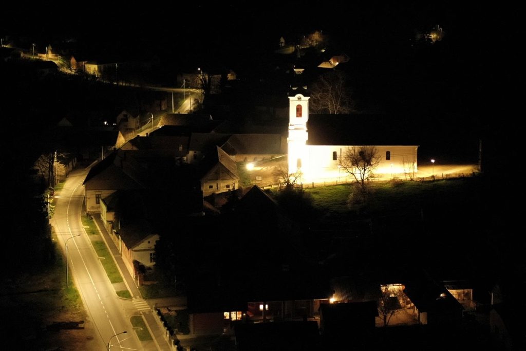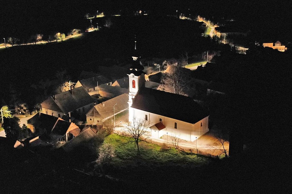 A múlt héten már a református templom díszkivilágítását is bekapcsolták, így már sötétedés után is méltó látványa a falunak az összedőléstől megmentett, felújított épület.