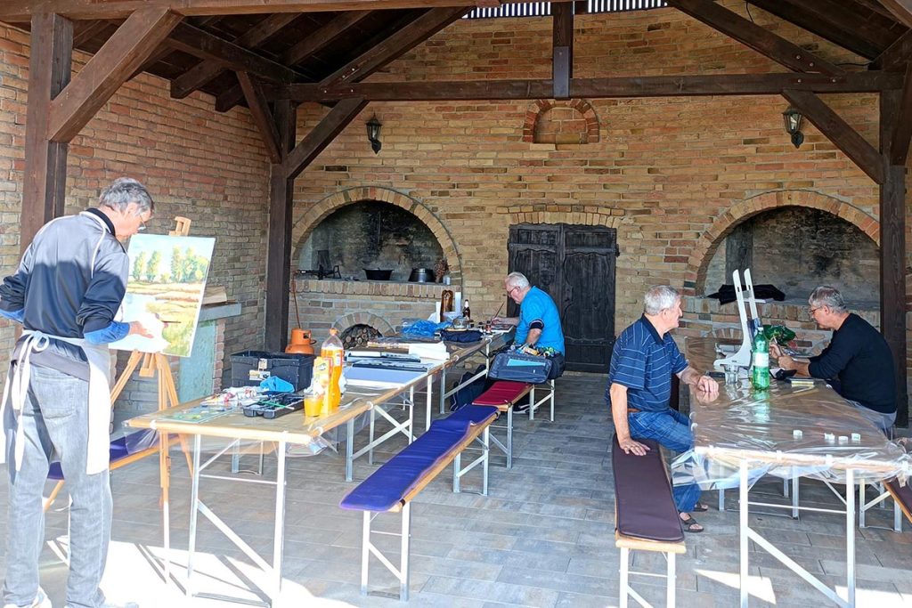 A szép késő őszi időnek köszönhetően az alkotók egy része a tornácon vagy a présház árnyékában festett, de volt, aki a kertben, a tó közelében levő lugast választotta. Volt, aki egyfajta terv alapján dolgozott, másokat egy fénykép ihletett meg. A székház hangulatos környezete kiváló hely volt az alkotásra, így délutánra sorra készültek el a művek, amelyek az épület falait díszítik majd. A sepsei festőkör mellett a pélmonostori HMDK keretében működő festőszekció tagjai is részt vettek a táborban.