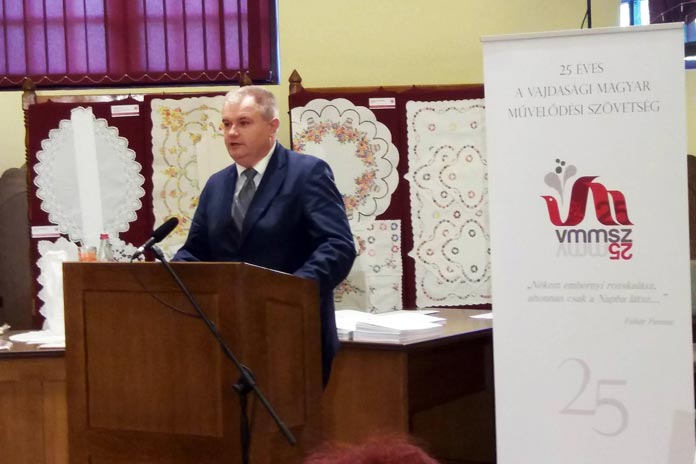 A főosztályvezető beszédében elmondta, hogy Magyarország kormánya nagyrabecsüléssel tekint a Vajdasági Magyar Művelődési Szövetségre, amely az egész nemzet büszkesége.