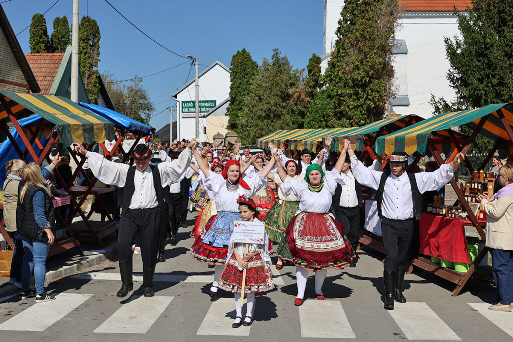Istodobno sa svečanim otvorenjem, tradicionalna povorka plesača krenula je od crkve, donoseći šarenilo i veselje u središte mjesta. Na pozornici su potom nastupili brojni folklorni ansambli iz Vardarca, Kopačeva, Belog Manastira, Dalj Planine, Batine, Suze, Laslova, osječke Retfale, te iz mađarskih mjesta Hosszúhetény, Zengővárkony i Pečuha. Nakon toga, večer su glazbom obogatili Nótár Mary i Tünde Tóth, koje su poznatim hitovima brzo rasplesale publiku.