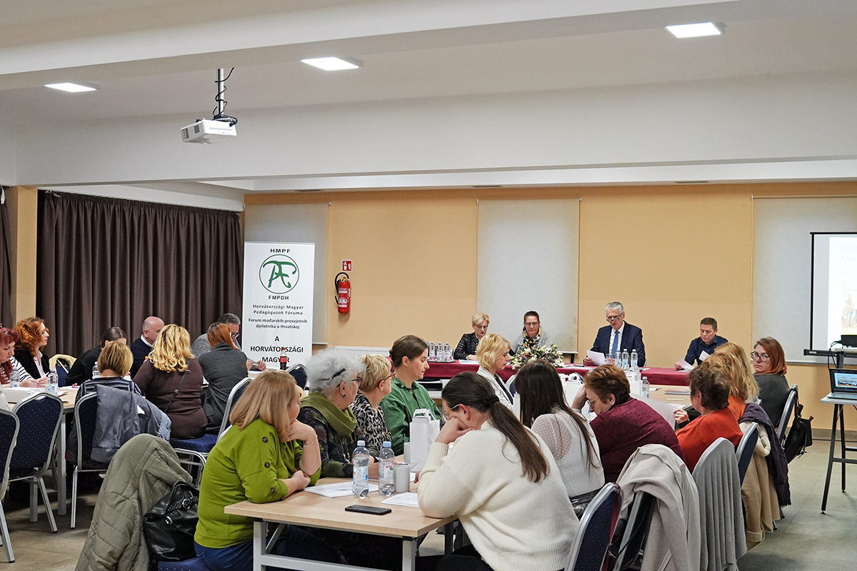Prošloga tjedna u Kopačevu je održana izborna skupština Foruma mađarskih prosvjetnih djelatnika u Hrvatskoj (FMPDH). Na skupu su, uz izbor novog vodstva, razmotreni najvažniji stručni programi iz proteklog razdoblja, realizirane potpore i stručna usavršavanja, a tom je prigodom upriličena i dodjela prvih mađarskih pedagoških iskaznica izdanih u Mađarskoj.