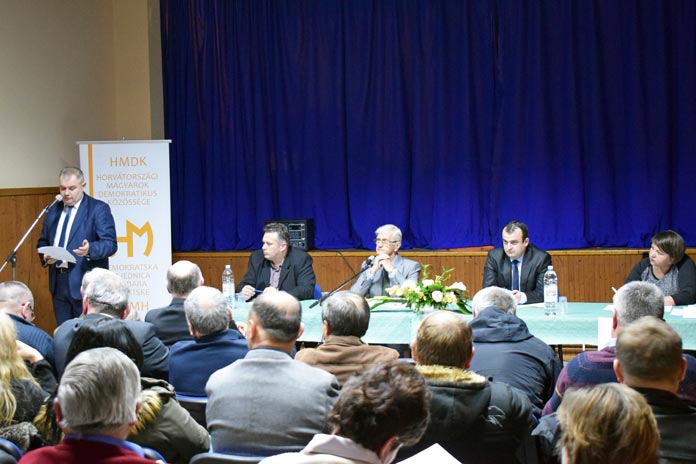 Jakab Sándor a HMDK sokrétű tevékenységéről számolt be, beszélt többek között a szervezet olyan jelentős fórumok munkájában való részvételéről, mint a Magyar Állandó Értekezlet, a Kárpát-medencei Autonómia Tanács vagy a Horvát-Magyar Kisebbségi Vegyes Bizottság. Felidézte a szervezet 24 évvel ezelőtti megalakulásának legfontosabb momentumait és a kezdeteket, a magyarságunk érdekében elért sikerekről is beszélt. Köszönetet mondott Horvátország és Magyarország kormányának is a jelentős anyagi támogatásokért, amelyekben 2017-ben a horvátországi magyar közösség részesült. Az elmúlt időszak legjelentősebb támogatásának a HMDK Vidék- és Gazdaságfejlesztési Programját nevezte, mint mondta, ilyen nagyságrendű támogatásnak először tárgya a gazdasági tevékenység, ami létfontosságú, mert ezzel nemzeti közösségünk legfontosabb céljainak a megvalósulását segítik elő: a fennmaradást és a helyben maradást.