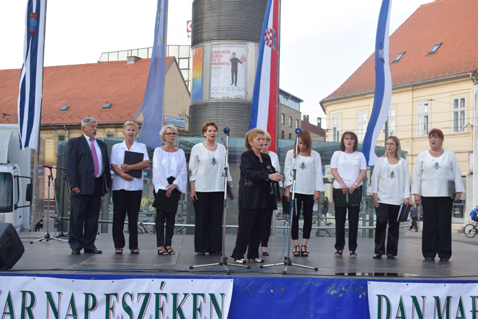 Szombat délután magyar zenétől volt hangos az eszéki Ante Starčević tér, a kirakodóvásáron a magyar kultúregyesületek és települések képviselői, termelők kínálták a házi süteményeket, ételeket, kézimunkákat. Az időnként el-eleredő eső sem szegte kedvét senkinek, és lassan megtelt a tér nézelődőkkel is.