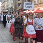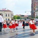 A színpadi bemutatkozás mellett táncos körmenetben mutatták be díszes népviseletüket a gyermek és felnőtt táncegyüttesek, majd felsorakoztak a színpad előtt.