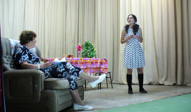 A hétfős színjátszó csoport az első alkalomhoz hasonlóan most is negyedórás bohózatokat adott elő.