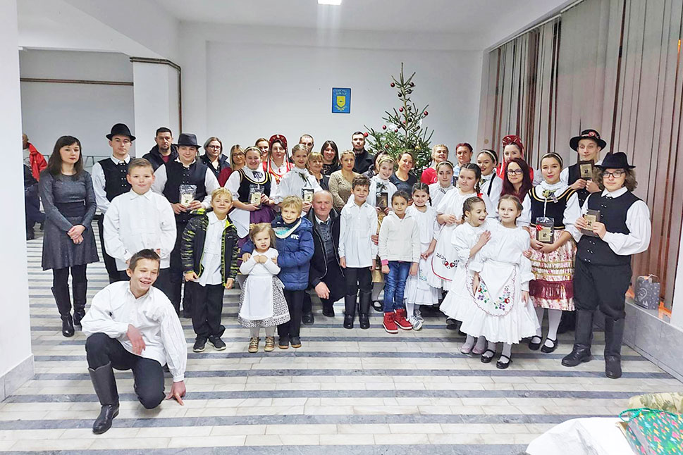 A Vinkovcei Magyar Kultúregyesület egy év kihagyás után tavaly ismét megszervezhette karácsonyi összejövetelét a város magyar közössége számára. A szervezet kórusa Varga Tímea vezetésével egy karácsonyi énekekből álló csokorral lepte meg a résztvevőket, a gyerekek örömére pedig a Télapó is bekopogtatott ajándékkal teli puttonyával. Az egyesület nem feledkezett meg az idősebb tagokról sem, őket is ajándékcsomaggal lepte meg az ünnep alkalmából.