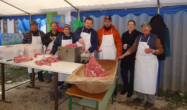 A szombati nap folyamán mindenki elkészítette a maga tájegységére jellemző disznótoros ételt. A hazaiak a maglódi fűszerezésű hurkát töltötték meg a lövétei „disznóságok” mellett, a vajdaságiak üstjében čobanac/bográcsgulyás rotyogott, a várdaróciak pedig közkívánatra igazi baranyai kolbászt kevertek, természetesen a húson kívül minden alapanyagot itthonról – így a fűszerpaprikát is – vittek.