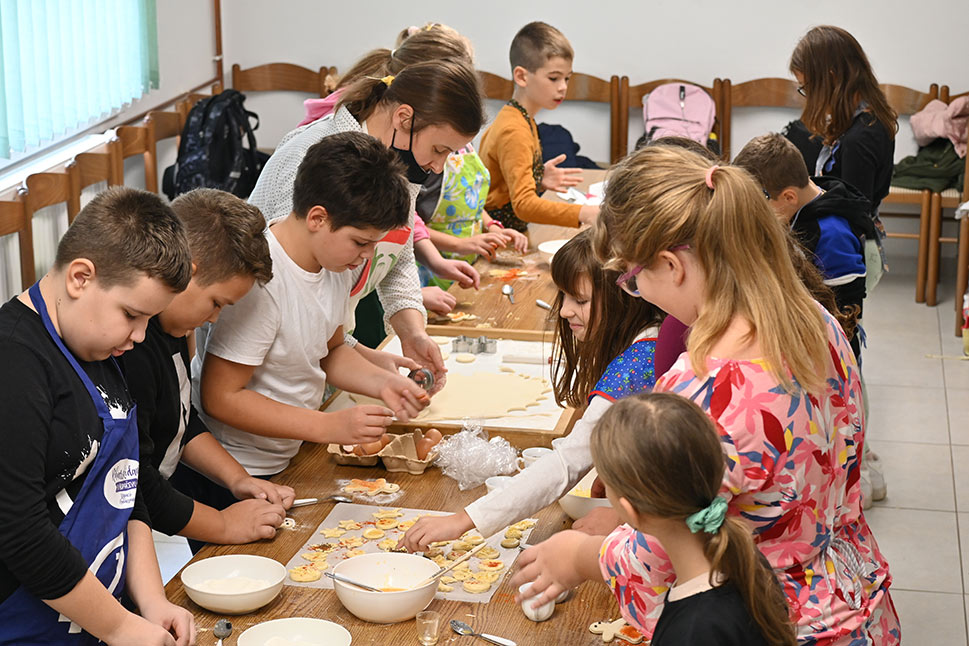 – Ma már nem minden családban készítenek kelt tésztából ennivalót, a gyerekek ritkán találkoznak nyújtófával, gyúródeszkával, süteményszaggatóval. Pedig a süteménykészítés nagyon kreatív és szórakoztató tud lenni a legkisebbek számára is, a foglalkozásunkon résztvevő gyerekek kipróbálhatták magukat a teljes folyamatban – tudtuk meg Jáger Brigittától.