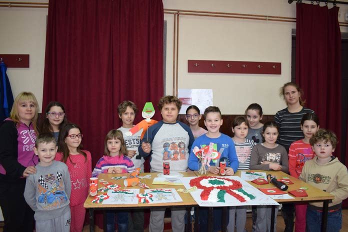 A műhelyfoglalkozásokon a gyerekek nemzeti ünnepünkhöz kapcsolódó motívumokat festettek, rajzoltak, melyek a vukovári előadás díszletét képezik majd. A kézműves foglalkozásokat Mandácskó Eszter tartotta, aki a Vukovári Magyarok Egyesületében tevékenykedik a Petőfi-program keretében, és más egyesületeink munkájába is besegít.