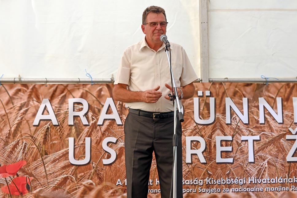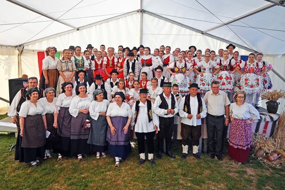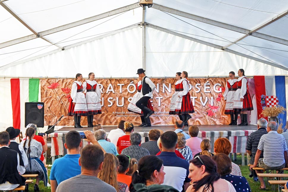 Mialatt a vadászháznál rotyogott a halpaprikás, addig a művelődési ház udvarában a Petőfi Sándor Kultúregyesület aratóünnepséget tartott. A jelenlévőket a szervezet elnöke, Lapis János köszöntötte, majd pedig Jankovics Róbert parlamenti képviselőnk szólt a közönséghez, akit az Ernestinovói járás elöljárója, Marijana Junušić követett. A színpadot ezután a helyi kultúregyesület legfiatalabb táncosai vették birtokba. Őket a Kórógyi Ady Endre Kultúregyesület, a dályhegyi Petőfi Sándor KE, a HMDK kiskőszegi alapszervezetének táncosai, a Kórógy Hagyományőrző Egyesület ifjúsági csoportja, az antunovaci néptáncosok, valamint a helyi kultúregyesület idősebbekből álló együttesei követték.