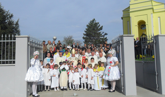 Erdőd, 2013. november 3. – Az erdődi Mindenszentek templomát 1880-ban építették. A 1991-es honvédő háború alatt teljesen lerombolták. Az új templom építése 2002-ben kezdődött, és az elmúlt hetekben fejeződött be. A templom megszentelésére mindenszentek napját követő vasárnap került sor. A ceremóniát Đuro Hranić djakovo-eszéki segédpüspök vezette. Az eseményen a környékbeli magyarok is ott voltak. A dályhegyi magyar gyermektánccsoport tagjai népviseletben vettek részt rajta.