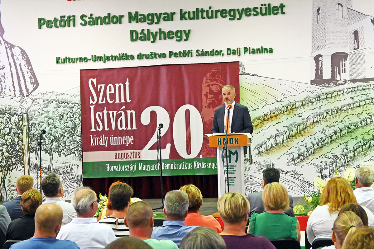 – A központi Szent István-napi ünnepségünkön egy megható rendezvénysorozatnak voltunk részesei, hiszen nemcsak az új kenyeret szenteltük meg, nemcsak István királyunk üzeneteire emlékeztünk, hanem egy olyan nagyszerű, az összetartást szolgáló embertől búcsúztunk el, mint amilyen Ante Markić főtisztelendő plébános úr, aki 49 évig szolgálta horvátként itt a közösséget. Olyan tételeket fogalmaztunk meg, amelyek nagyon mélyrehatóak, és amelyeket úgy foglalhatnánk össze a legrövidebben, hogy összpontosítsunk azokra a csatákra, amelyeket már nem fegyverrel kell megvívnunk. Összpontosítsunk arra, hogy gyermekeinkhez, unokáinkhoz magyarul szóljunk azért, hogy ötven év múlva is itt, ezen a területen is, vagyis Szlavóniában is legyenek még magyarok, legyen még magyar kultúra, legyen még magyar nyelvű szentmise, és hogy Szent István nagyszerű örökségét itt, a déli végeken is ápolni lehessen – nyilatkozta Jankovics Róbert, a HMDK elnöke.