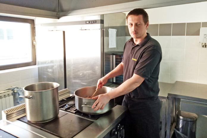 Fekete Norbert, a Laskói Általános Iskola szakácsa, mint ahogy otthon, úgy az iskolakonyhában is nagy hangsúlyt fektet a változatosságra és az egészséges táplálkozásra, de, mint mondja, ez nem mindig könnyű feladat, hisz a gyerekeknek elmegy a kedvük, ha túl sok a zöld szín az eléjük kerülő ételben.
