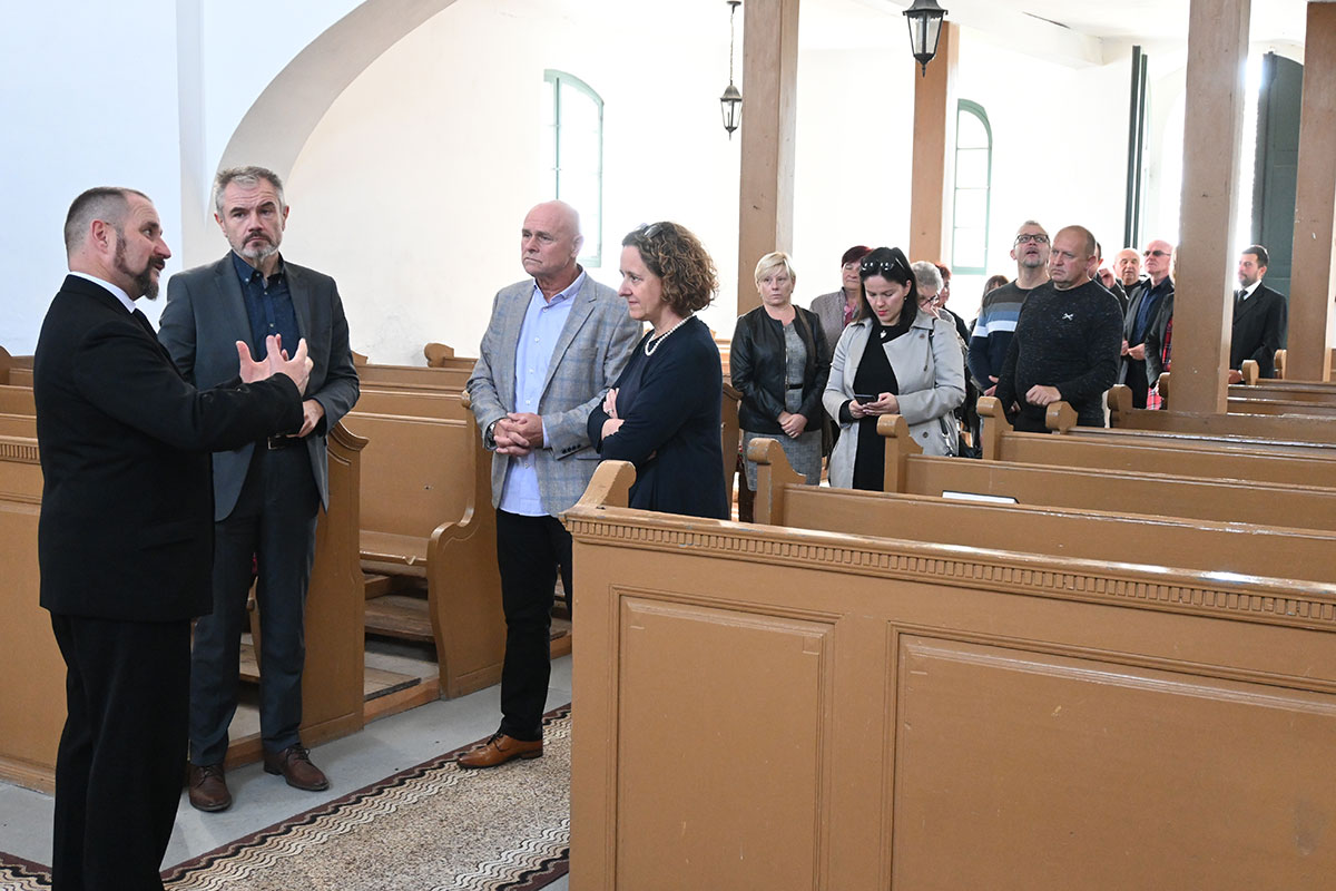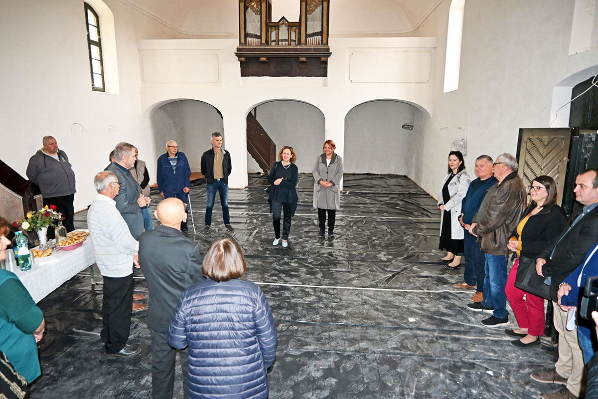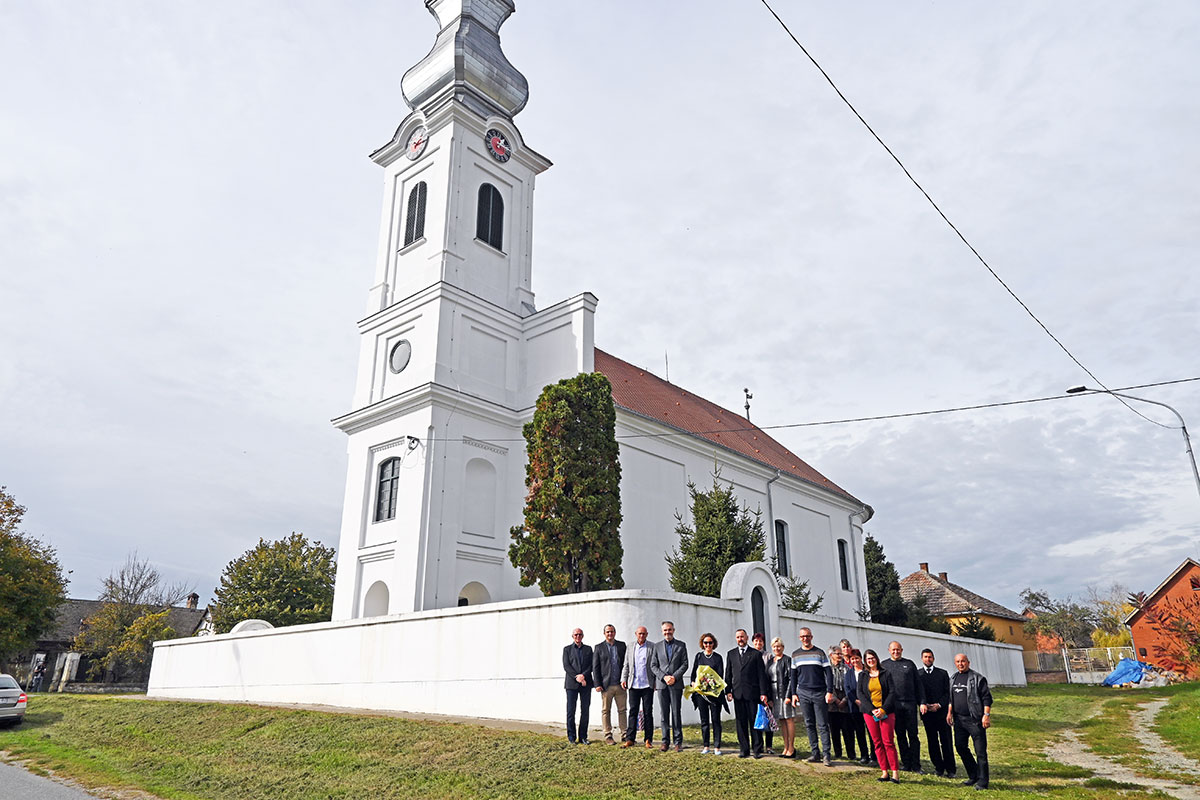 Nina Obuljen Koržinek i ovdje je došla u pratnji Róberta Jankovicsa, saborskog zastupnika i Olivera Matijevića, izvršnog predsjednika DZMH, moglo se čuti izvješće o tijeku obnove crkve. Đerđ Varga, župnik sela, čitao je iz Biblije i poklonio ministrici jedan drveni križ, osim njega, mjesni čelnici, mještani i reformirani vjernici izrazili su zahvalnost potpori ministrice, zahvaljujući čemu će njihovi nasljednici također moći ovdje ići na bogoslužje.