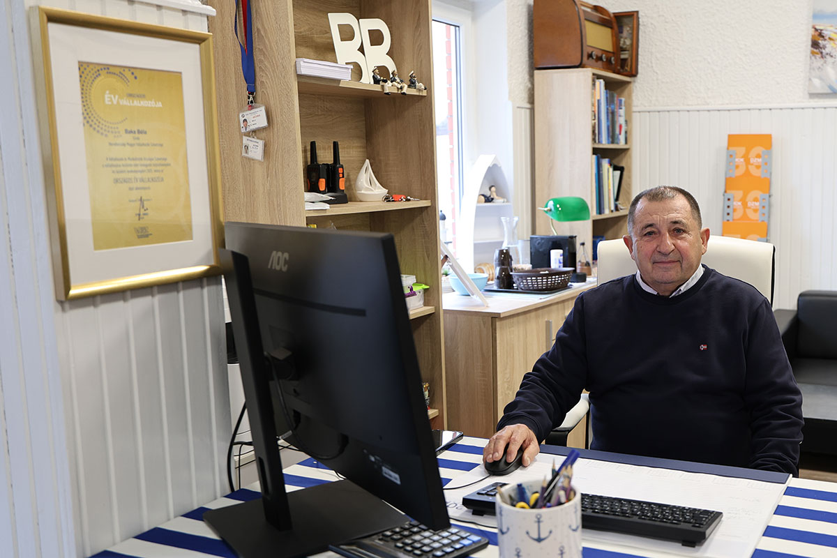 Az id. Baka Bélával készített riportunk egyik apropója az volt, hogy hajósiskolát nyitott Kopácson, a másik ok pedig, hogy kitüntették az Országos Év Vállalkozója díjjal.