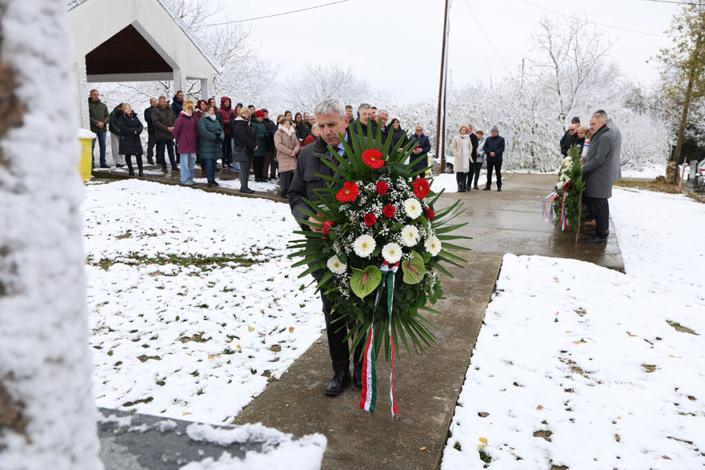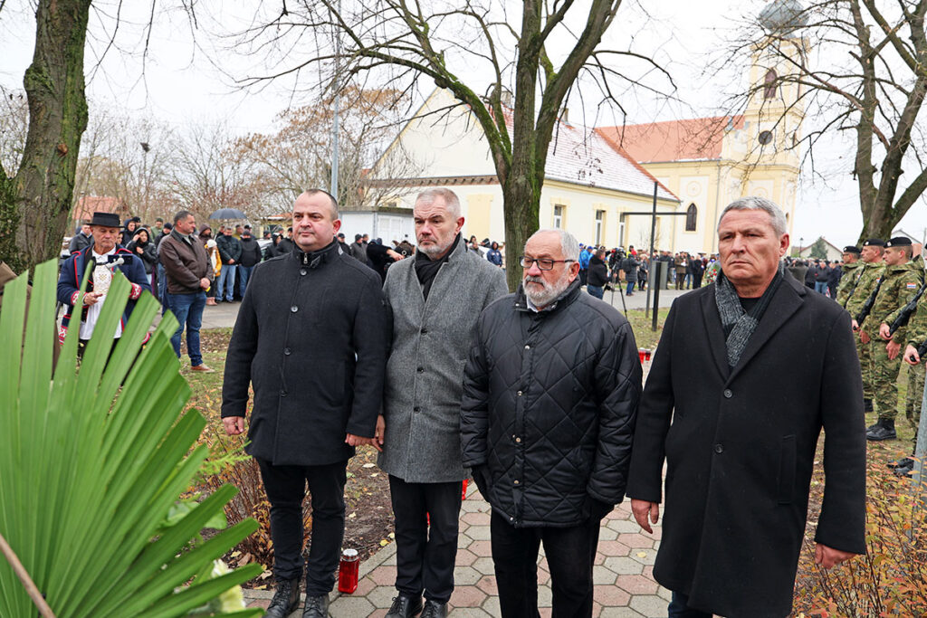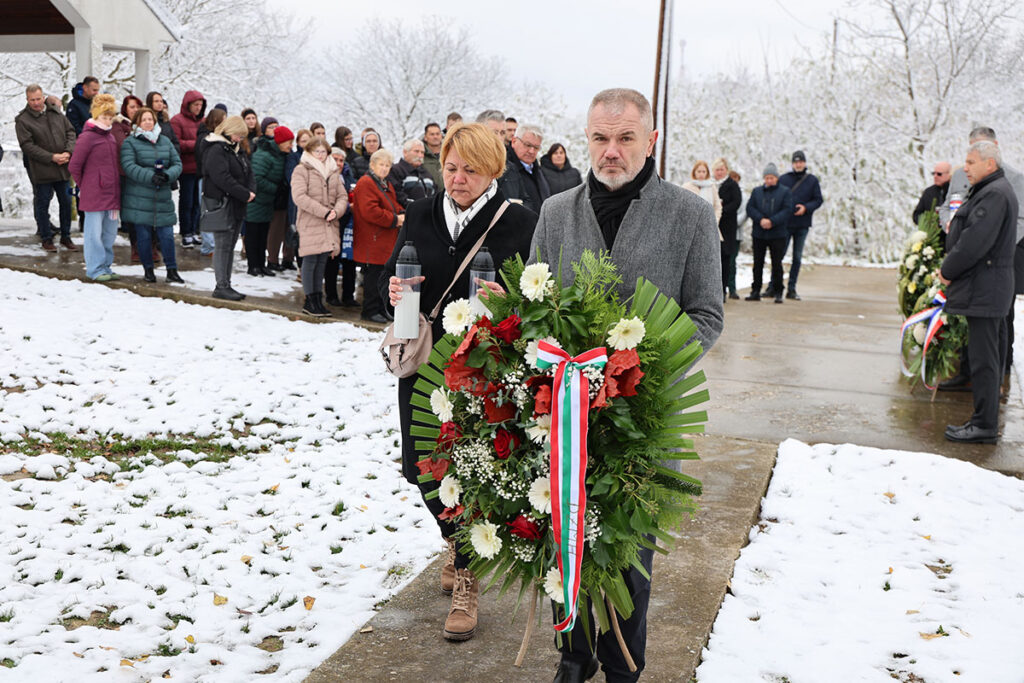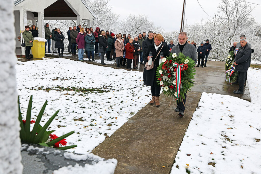A temetőben sorra borultak a koszorúk az emlékmű lábához: a helyiek és a civil szervezetek, valamint az Erdődi járás képviselői mellett Jankovics Róbert, Magdó János eszéki magyar főkonzul és Prosszer Horvatin Szanella, a HMDK országos titkára hajtottak fejet a meggyilkolt áldozatok emléke előtt.