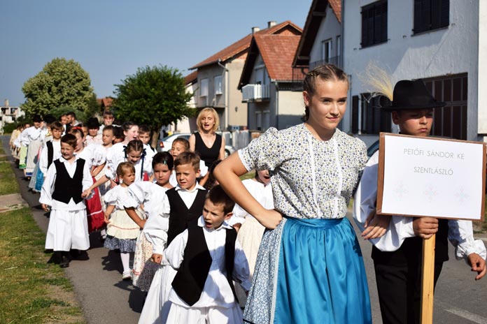 A programsorozat látványos része a tánccsoportok felvonulása volt, élükön lovasok haladtak. A meghívott kultúregyesületek népviseletbe öltözött, a főutcán vonuló dalos, táncos menete előcsalogatta a házakból az embereket, akikkel lassan megteltek a kultúrotthon udvarán felállított nagysátor padsorai. Sorra mutatkoztak be a felvonulás résztvevői. A kultúrműsor szervezője ezúttal is a Petőfi Sándor Kultúregyesület volt, amelynek négy korosztályban működik tánccsoportja, így ők voltak a műsor főszereplői is.