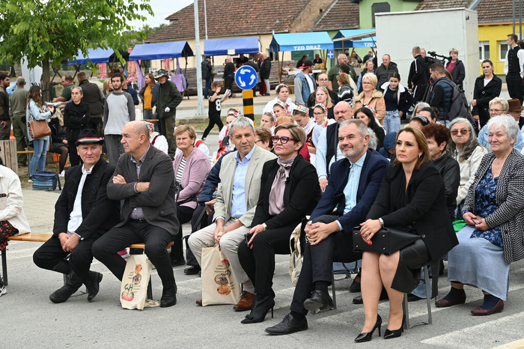A folklórműsorra a központban felállított színpadon került sor, a résztvevőket Jankovics Róbert parlamenti képviselőnk, Valentina Avdičević, a Darázsi járás elöljárója, Magdó János eszéki magyar főkonzul és Stipan Šašlin parlamenti képviselő köszöntötte és méltatta a negyed évszázados múlttal rendelkező fesztivált, valamint a szervezők munkáját. Közöttük foglalt helyet Sipos Sándor, a Darázsi járás elöljáró-helyettese is.