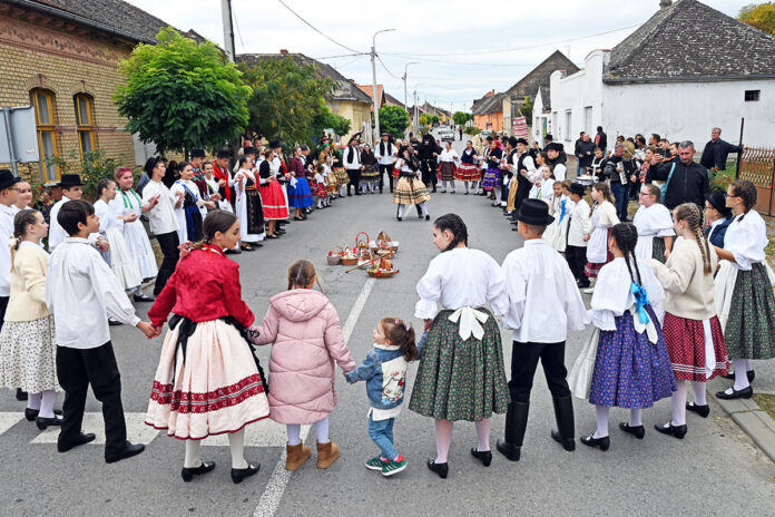 A részt vevő népi tánccsoportok idén is zenei kísérettel – a kórógyi Aranycsárdáséval – vonultak végig a falu főutcáján. A sort vezető bíró és bíróné, akik a helyi táncegyüttes tagjaiként vállalták a szerepet, szőlővel és borral kínálták a nézelődőket. A faluközpontba érve nem maradt el a közös csárdás, s a táncosok látványa mellett a standok gazdagságában is örömüket lelhették a fesztivál résztvevői: bort, szőlőt, szuveníreket, édességeket vásárolhattak, a helyi vadásztársaság pedig bográcsgulyást készített.