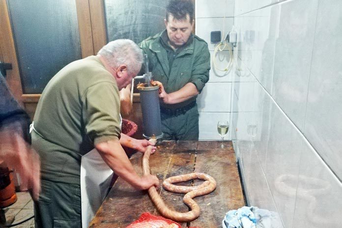– Második éve szervezzük meg ezt a rendezvényt, amely a hagyományok felelevenítése mellett kiváló alkalom az emberek egymással való találkozására, a társalgásra is – mondta Kelemen Dezső, a HMDK szentlászlói alapszervezetének az elnöke, az esemény főszervezője, aki hozzátette azt is, céljuk továbbadni a hagyományos disznóvágási szokásokat, az ételek elkészítésén át a közös munka után megérdemelt torig.