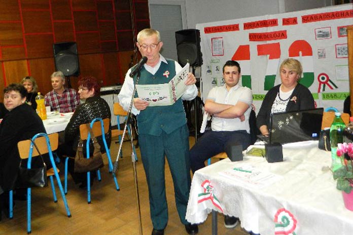 A beszámolók után az egyesület népi tánccsoportjának tagjai elevenítették fel a március 15-ei eseményeket, majd egy zenés, dalos összeállítással és társalgással zárták az ünnepi összejövetelt.