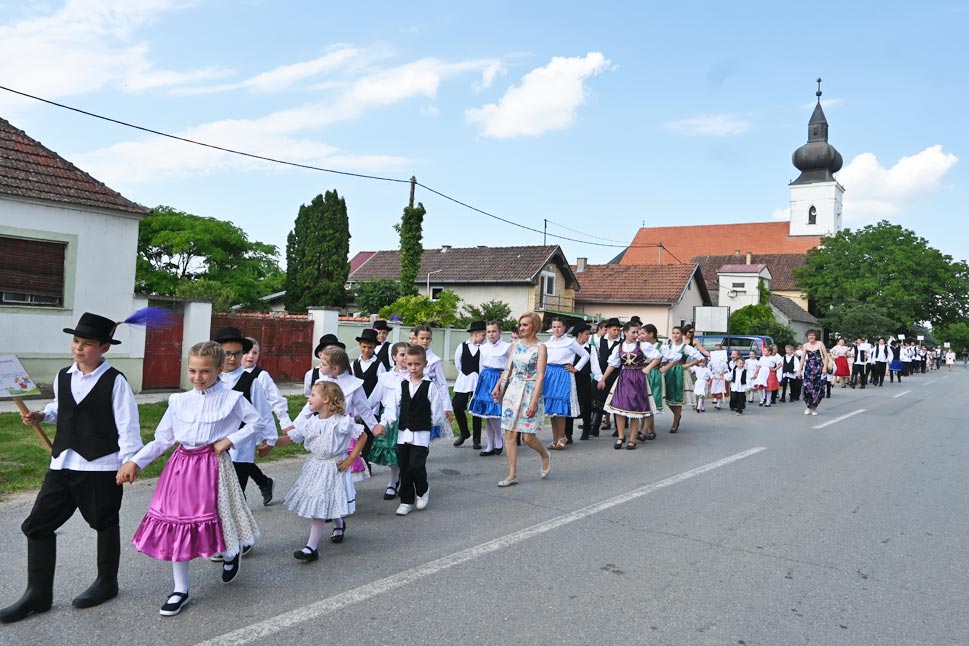 Az 5. gyermek dal- és táncfesztiválra érkező kultúregyesületek gyermektánccsoportjainak a tagjai a kórógyi kultúrotthon udvarán gyülekeztek: a házigazda Kórógy Hagyományőrző Egyesület táncosai mellett a kórógyi Ady Endre Kultúregyesület gyermektánccsoportja, a szentlászlói és dályhegyi Petőfi Sándor Kultúregyesület csoportja, a Várdaróc Magyar Kultúregyesület Gerle gyermektánccsoportja, valamint a csúzai Jókai Mór Kultúregyesület Hajnalcsillag gyermektánccsoportjának tagjai. Majd énekelve vonultak fel a főutcán a templomig – hívogató menettáncuk lassan megtöltötte az ülőhelyeket a kultúrotthon udvarán. A rekkenő hőség ellenére minden csoporttól egy-egy szép produkciót láthattunk a színpadon.