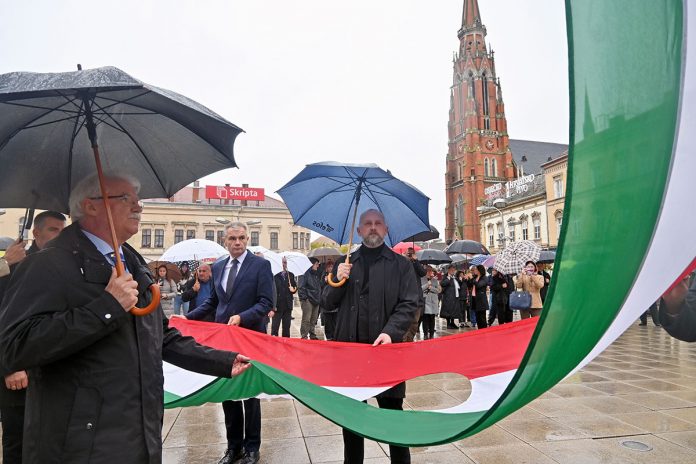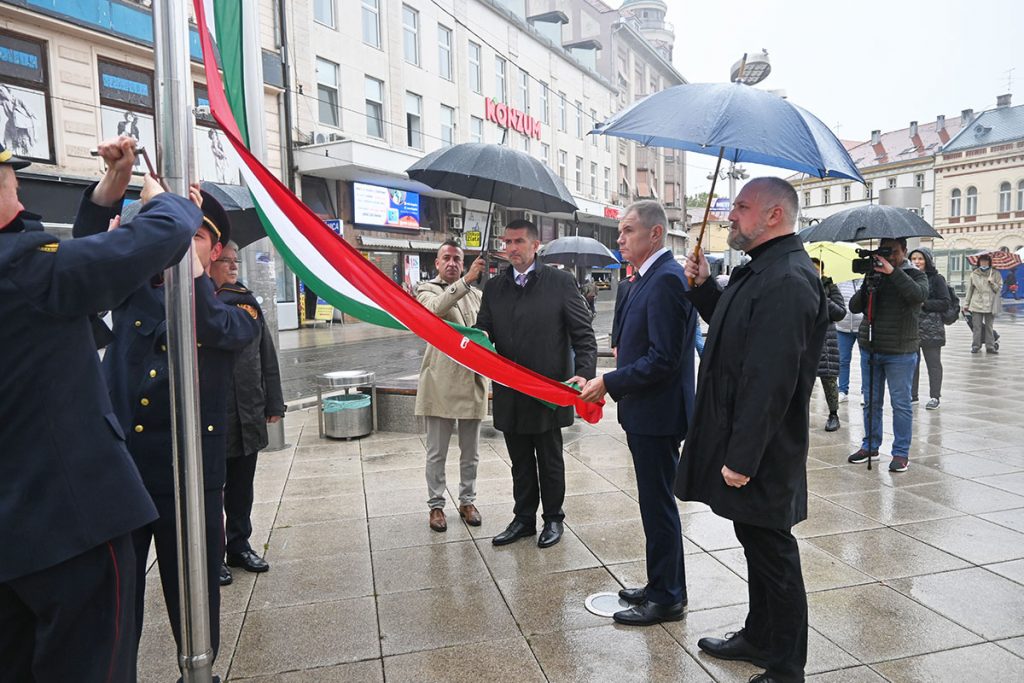 Eszék főterén idén is felvonták a forradalmi zászlót
