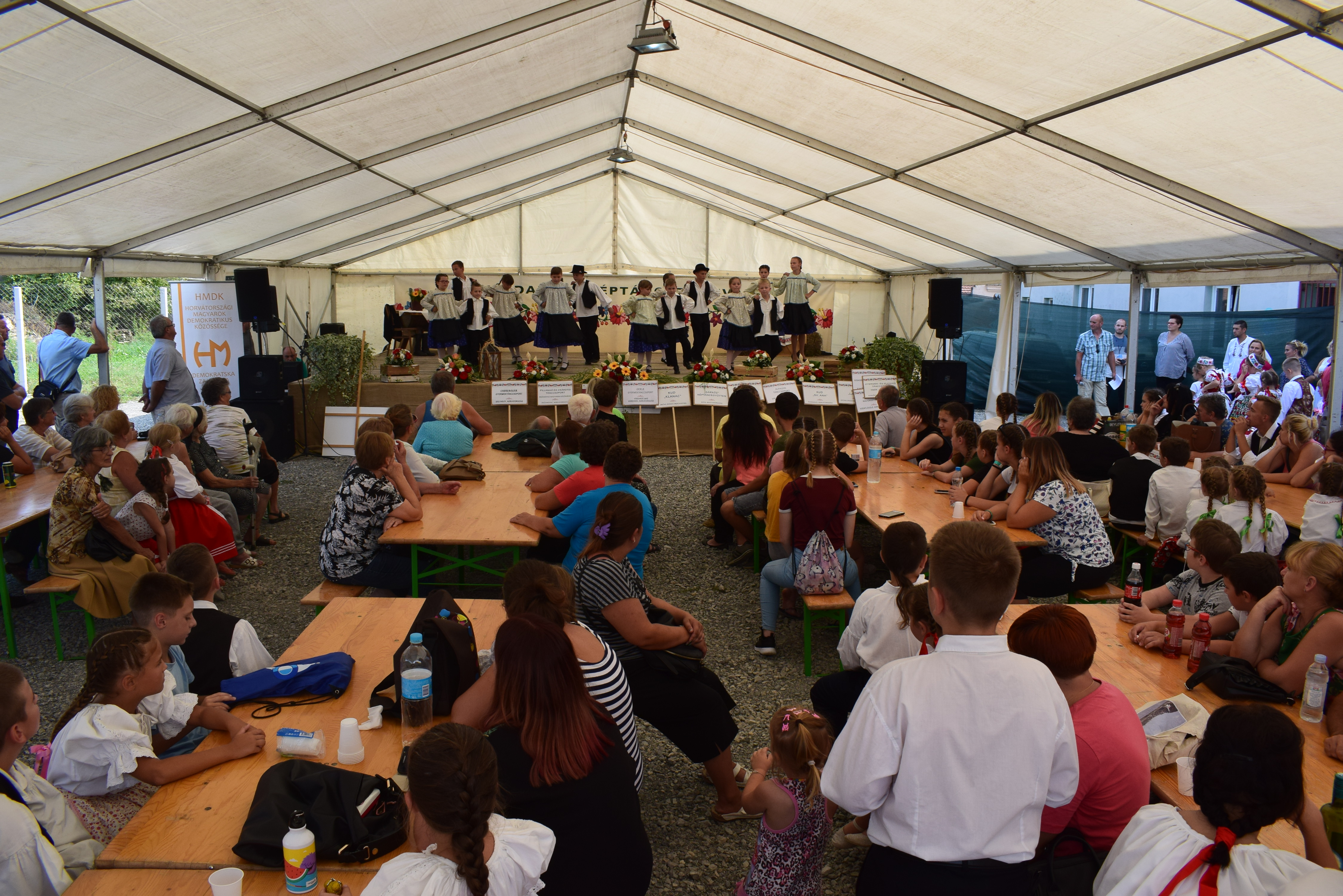 A műsor második részére zsúfolásig megtelt a kultúrotthon mögött felállított hatalmas sátor. A legtöbben maradtak a néptáncszemle után is, hiszen akkor kezdődött az utcabál, a kórógyi Aranycsárdás együttes és a vajdasági Twins Band zenéjével.