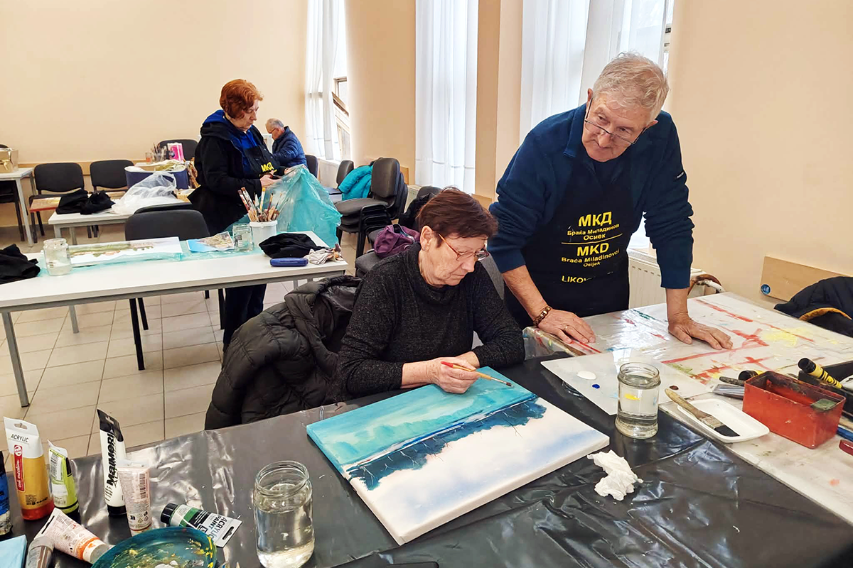 A HMDK pélmonostori alapszervezetének festőszekciója a múlt hét csütörtökén az Eszéken működő Braća Miladinovci Macedón Kulturális Egyesület meghívására vett részt egy festőtáborban. Az esemény a Macedón Kultúra Napjai rendezvénysorozat részeként valósult meg, és újabb lehetőséget teremtett a pélmonostori alkotócsoport számára a bemutatkozásra és tapasztalatcserére.